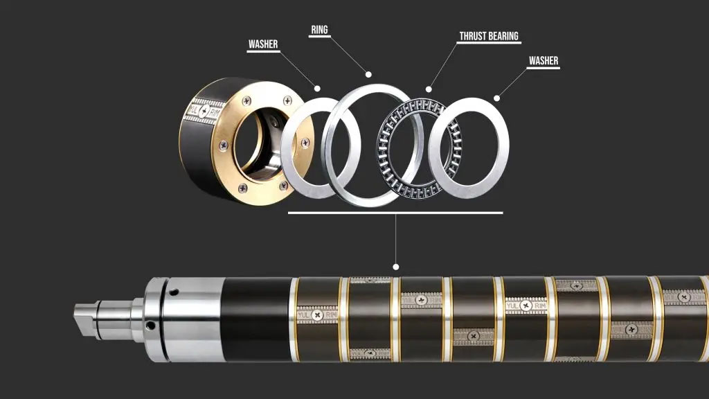 - Thrust bearing units as in the picture below are installed between each cartridge. and This unit prevents torque being affected by its neighbours.